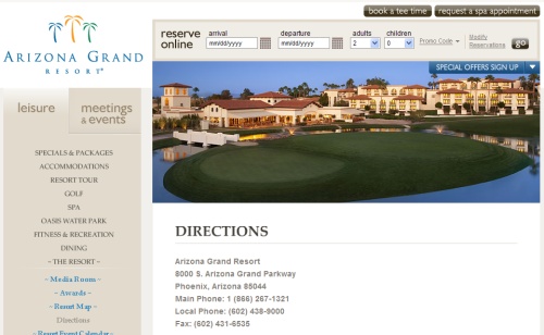 通过Facebook预订引擎,整个预订过程直接在Facebook网站上完成,所以不需要跳转到酒店网站。 然而,Sabre Hospitality认为,Facebook预订引擎应该有酒店网站的外观和感觉。 下图为亚利桑那度假酒店的主页,以供对比。
