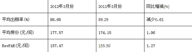 二、2012年3月份连锁经济型酒店RevPAR及其与上年同期的比较情况 表三