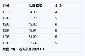 截至2012年9月30日,洲际酒店及度假村品牌在全球拥有168家酒店,客房总数达56,813间。从地区分布来看,AMEA(中东、非洲)地区拥有的酒店数量是最多的,达64家,客房数为20,543间。其次是Americas(美洲)地区,拥有53家酒店,客房总数达17,756间。大中华区拥有的洲际酒店在全球来说是比较少的,总有22家酒店,客房数为17,756间,与上季度相比减少了一家。 3.品牌在华影响力 洲际酒店及度假村品牌指数变化(2012年5月-10月)