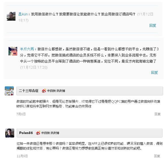 时间:2012-11-26 15:04:57 来源:环球旅讯记者 周德升| 2)反对方:微信什么都想做 煮成“一锅粥” 很多网友表示对微信的定位不清晰: