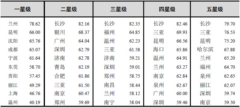 13年第一季度重点旅游城市星级饭店平均出租率前10名情况表(按星级分)单位:%