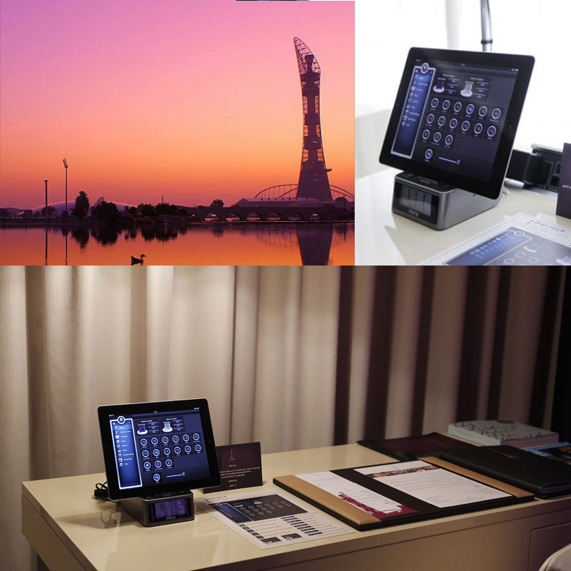 多哈火炬酒店 如果一种色调的照明无法满足你的需求,别担心,多哈火炬酒店的每个房间都有12种照明颜色可选。此外,套房中还带有交互式的LED电视及平板电脑,你可以借助这些设备来订购客房服务。