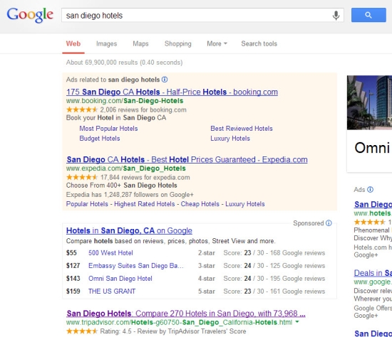 针对含义相同但内容不同的多种搜索请求,Google很可能不会在那些搜索量更高的搜索请求的结果页面显示知识图谱滚动条,这样一来广告就能在最显眼的位置显示。那我们就不禁要问,Google一开始为什么要推出知识图谱滚动条呢? 又或者说Google的算法并不像我们所期望的那么成熟。 知识图谱滚动条不会在美国以外地区的某些用户的搜索页面上显示,我有一位同事在智利的圣地亚哥使用Google网站来搜索“位于法国巴黎的酒店”,他的搜索结果页并未出现知识图谱滚动条。于是他使用虚拟专用网络(VPN)来转换至美国的IP地址,然后他就能看到知识图谱滚动条出现在了搜索结果页当中。 在一些与全球性的酒店相关的搜索结果页面,知识图谱滚动条也并未出现。比方说当我搜索“圣保罗的酒店”和“位于里约的酒店”时,知识图谱滚动条在搜索结果页面显示;而当我搜索有关“圣地亚哥的酒店”这一内容时,知识图谱滚动条并未出现在搜索结果页面当中。 Google未来将很可能在识别旅游相关搜索方面取得更好的表现,我认为知识图谱滚动条很有可能将把更多顾客引导至实际的酒店官网,与OTA相比,它在这方面所发挥的作用可能将会更大。 (Wing 编译) |