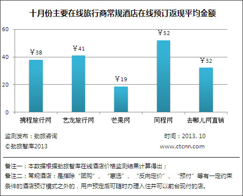 图一:五家主要在线旅游网站在线酒店返现平均金额