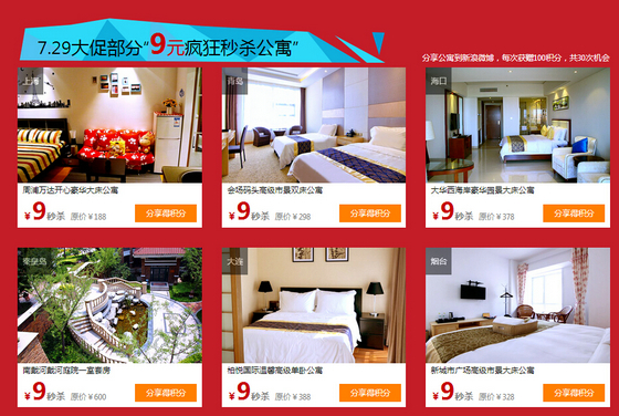时间:2014-07-26 15:47:30 来源:不详 7.29大促预热第二波活动地址:http://promotion.tujia.com/729/yr2/?code=bbs 领卡赢积分 感受不一样的途家 作为途家7.29史上最疯狂大促预热活动的第二波,本次“领卡赢积分”活动会从7月22日持续到7月31日,期间为广大用户准备了更加令人兴奋的优惠。用户只需登录途家网站大促活动页面或途家手机APP活动页面就能免费领取价值20元、30元和50元的礼品卡。此外,用户现在还能参与丰富的赢取积分活动。现在注册途家会员就能够获得500积分;首次分享活动专题到新浪微博可获得1000积分;每次分享公寓到新浪微博可获得100积分,最多30次共可获得3000积分,可以抵扣30元哦。 以上所领取的礼品卡和赢取的积分,用户不仅可以在今后预定房源时使用,还可在7月29日开启的三天大促中抵扣相应的房费,享受折上折的优惠。 用户提前收藏心仪秒杀公寓 途家大促第二期预热同时也展示了即将在大促期间准备供用户秒杀的精品公寓,比如有位于上海浦东新区的周浦万达开心公寓豪华大床房,原价188元/晚,秒杀价9元;还有目前超级火爆的青岛途家斯维登公寓会场码头店的高级市景双床公寓,原价298元,秒杀价也是99元,这个地方是很多青岛人吃“会场梭子蟹”的圣地;还有大连途家柏悦国际温馨高级市景单卧房,原价338元/晚,也是9元秒杀…… 在99元秒杀专区,也有类似南京汤城东郡时尚大床房、成都宽窄巷子地铁口精致公寓、大东海两室大飘窗园景公寓等平时售价都在350元以上的精品公寓。更多精品公寓和别墅则都纷纷给出优惠折扣,在“超值折扣公寓”可以找到。 据了解,秒杀专区和超值折扣公寓专区的精品房源每小时更新一次,途家几乎把其国内数万套房源尽数调动起来。用户的反馈也非常积极,目前在微博微信上已有大量用户分享这些精品房源,一方面拿积分,一方面则准备伺机而动抢下这些超值精品公寓。 三大优势造就不一样的途家 途家之所以“不一样”,是因为拥有三大优势。首先,途家性价比高。途家公寓的价格通常是五星级酒店的一半,但它却有比五星级酒店更贵的布草和不亚于星级酒店的高品质配套。其次,途家有居家体验。途家公寓可以洗衣、做饭,能为游客在旅途中延续“家”的温馨。第三,途家空间更大,并且房型多样,从一室一厅到两室一厅,从复式到别墅,更有温泉、海景、高尔夫、养生等不同主题的房源,游客可以根据自己的喜好尽情选择。 此外,途家还拥有备受肯定的高品质服务。途家拥有专业酒店服务团队,服务品质也受到了用户的广泛好评。上一季度用户对途家公寓的平均评分高达4.51分(满分5分),有超过97%的用户在入住途家后表示还会推荐给身边的亲朋好友。 |