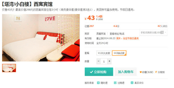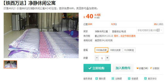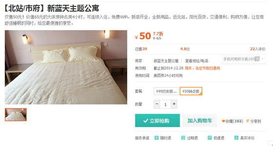 2013年开业,有高·中·低特色房间60余间。酒店坐落于沈阳市皇姑区北陵大街26号,北站商贸区内,辽宁省政府,辽宁省公安厅,皇姑区政府等行政机关,辽宁中医院,辽宁中医药大学,四院,新东方学校,24中学,中东教育等学院校毗邻。 美团价:50元(3小时,原价80元) 嘉之尚主题宾馆是一家休闲商务型主题宾馆,成立于2013年,坐落于沈阳市铁西区兴工北街3号,地理位置繁华,宾馆距离沈阳站步行10分钟,紧邻北行、太原街、铁百、新玛特、千姿汇等商圈。 美团价58元(4小时,原价80元) 新蓝天主题公寓,新店开业,店内所有用品为新品,宜家家居的床、柜、椅子、配饰,更有穗宝床垫,专业的床上用品给您带来好的睡眠质量。崭新的卫浴用品,超大的液晶电视、无线网络覆盖,让您在这里体验完美的享受。 美团价:50元(4小时,原价65元) 西寓宾馆室内装修经典时尚、浪漫温馨,提供24小时热水,床品优质,免费提供洗浴用品,液晶电视、高档卫浴、空调、宽频上网、周边公交便捷,出行方便、位置优越,是商旅之行的理想选择。 美团价:43元(3小时,原价298元) 净静休闲公寓装修风格舒适、温馨、又不失大气,落地飘窗、视野开阔,非常适合商旅中卸下满身疲惫、抖落风尘,更适合年轻白领及情侣过渡之用,经济实惠!干净温馨,是商务、娱乐、度假、聚会、接待亲朋好友的理想场所。 美团价:40元(4小时,原价88元) |