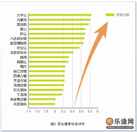 邀请网民从游览、交通、旅行社服务、旅游线路、住宿餐饮、休闲购物、卫生与安全、旅游从业者状况、旅游咨询业服务、知名度等十个方面对景区进行评价,各单项评价从1分到10分不等,再综合平均得出景区服务综合评价。总计评价景区26096个,参与评分的网民近10万人。综合评价最高的景区为九华山、九寨沟和鼓浪屿。20佳景区如下: