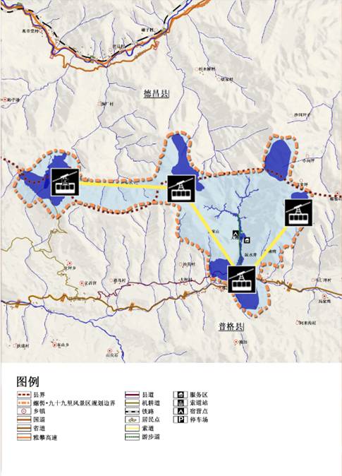 目前,西昌螺髻九十九里景区已先后与奥地利的多贝玛亚以及法国波马索道公司(世界最好索道建设公司)完成初步洽谈,经过凉山州螺髻山核心景区有限公司及凉山州州政府以及国家级索道工程专家的多方研讨,并论证规划设计方案,现已达成初步意向。