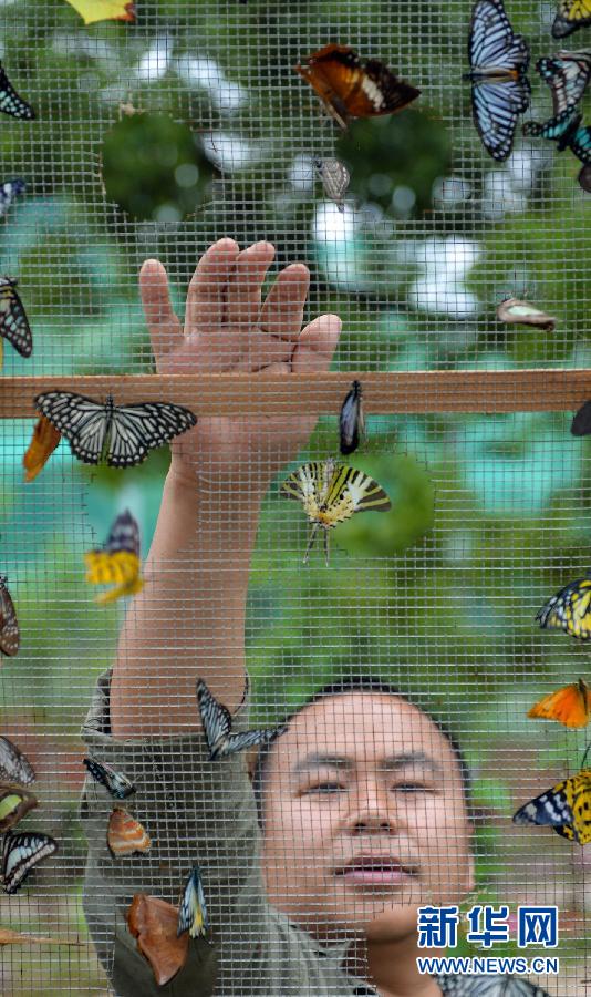 时间:2014-04-28 11:40:57 来源:不详 4月22日,工作人员在网棚内放飞5000余只培育成功的蝴蝶。当日,位于长沙市望城区白箬铺镇光明村的湖南首家蝴蝶文化主题公园——光明蝶谷日前完成布展,首次对媒体开放,并将于5月1日面向公众正式开放。据介绍,光明蝶谷是湖南首家集蝴蝶饲养、昆虫研究、科普教育、观赏摄影、蝴蝶工艺等于一体的蝴蝶文化主题生态公园,园区占地600余亩,饲养有凤蝶科、斑蝶科、蛱蝶科、粉蝶科等8个科属20余种名优蝴蝶。新华社记者 白禹 摄