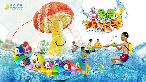 百万葵园经多年的发展,已然成为集赏花、游乐、美食、动漫于一身的综合性主题公园: 免费喷泉戏水池