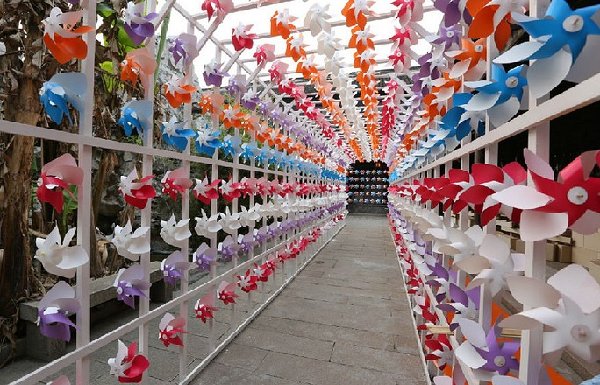 周庄水乡风车季从4月15日启动,将持续到7月15日,通过活动的嫁接与创新、与旅游电商的深入合作以及活动主体向原住民转移等三大创新,展现中国第一水乡的时尚、典雅与淳朴风情。从周庄外围入镇,道路两旁的路灯上都挂上了彩色风车迎接游客。在古镇的开阔场地和特色庭院内,安置着各式风车。纸箱王风车欢乐广场上,微风拂过,数千个大大小小、五彩斑斓的风车同时转动。前来游玩的中外小朋友们手持自制风车,奔跑在古镇的巷里巷外,成为游客眼中一道亮丽的风景线,带给古镇新的生命力。