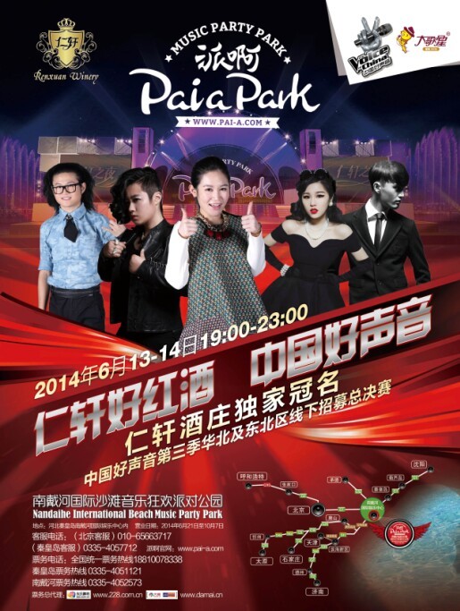 “派啊”南戴河国际沙滩音乐狂欢派对公园即将开幕!6月13、14日第三季中国好声音华北及东北区招募总决赛落户派啊海上舞台!在派啊与萱萱等众多明星畅享“仁轩之夜”,共享中国好声音!派啊——中国时尚元素与服务娱乐一体化结合最完美的诠释!