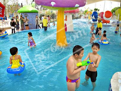 百万葵园音乐戏水池特别安装了美国引进的滤水器,边玩边换水,基本上12小时就可换一次新水,十分干净清洁。此外,园区还特别准备了游泳圈和橡皮艇给小朋友。我们还可以看到音乐戏池顶部有巨型天幕,让小朋友不受烈日暴晒,保持白白净净的小脸蛋。