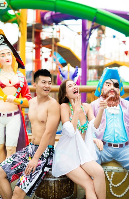 时间:2014-07-26 15:48:38 来源:不详 网上有个段子——交女朋友一定要带她去游泳池,你懂的。不知道有多少人是带着这个目的来天目湖水世界的。而我跟女友一起来这里,则有一多半的原因是来寻找一个清凉而激情的夏天。 加勒比海盗的探险之旅 天目湖水世界坐落于溧阳天目湖景区,从上海开车过去,大约只要2个多小时。来之前我就已经打探清楚,加勒比海盗城是这里最具特色的项目之一。一进园区,我们就迫不及待的开始加勒比海盗探险之旅。