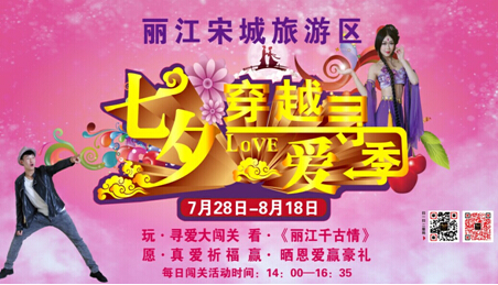 盛夏七夕,带着心爱的人到丽江宋城旅游区甜蜜狂欢吧!单身的你,也请带上穿越的激情和寻求真爱的心,经过寻爱大闯关的重重考验,感受《丽江千古情》浪漫情怀的熏陶、在走婚桥许下心愿;或许,在人头攒动的木府绣楼下、在摩梭爬花楼打跳的人潮中,会有个TA轻轻抠抠你的手心,自此开始一段美丽的邂逅。 玩·寻爱大闯关七夕穿越寻爱季期间,丽江宋城旅游区变身成为一个穿越狂欢的海洋,来到这里,你不仅能够和傣族、佤族、纳西族、藏族、摩梭人、傈僳族等各民族的帅哥美女们在丽江的蓝天白云下畅饮欢歌,还能玩寻爱闯关赢取每日大奖! 参与“寻爱大闯关”游戏的勇士需要通过段王爷、木婉清、阿朱、阿紫、钟灵5个关卡人物的重重考验,一路过关斩将才能找到真爱王姑娘,完成闯关并把信息卡投入真爱箱的勇士,我们会在每天16:35《木府招婿》现场抽取当天大奖,现场送出价值1000元的心连心龙凤呈祥纯银碗筷一对,除此之外,参与游戏的小伙伴都将得到景区送出的精美纪念品。 看·《丽江千古情》大型歌舞《丽江千古情》是云南省迄今为止投资最巨,科技含量最高、原生态文化容量最庞大的旅游演艺秀,带着爱人来看《丽江千古情》吧。在可容纳4700人的丽江千古情大剧院内,跟随水中垂直升降大摇臂、350平方米神奇水舞台、400平方米具有分屏错屏功能的全彩LED显屏、大型月亮与雪山机械模型等超过30多种难以想象的技术手段体验如梦似幻的极致震撼。 短短60分钟内便可看遍丽江的千年长史,不用攀山涉水即可在冰天雪地中感受马帮们在茶马古道上的种种艰辛,看尽这片土地上的血与泪、爱与情。 愿·真爱祈福七夕节甜蜜来袭,看着别人出双入对,你是不是也盼望那个TA快快出现。七夕穿越寻爱季期间,丽江宋城旅游区特别为游客们准备了诸多福利。 在茶马街上,手拿红绳的月下老人会为你和心仪的TA打开一扇美丽的邂逅之门;景区还会为游客提供免费许愿点,只要你写上对爱情的希冀,在这片“叫天天答应,叫地地答应”的净土上,那措海的波光和微风一定会为你的心愿祈福。 不仅如此,游客还能在景区感受摩梭人走婚、爬花楼的独特婚恋习俗;在马帮广场绣楼下零距离接触丽江贵族——木氏土司家抛绣球招亲的场景;与鹊桥合影;邂逅美女帅哥,良缘巧结。 赢·晒恩爱赢豪礼为了让更多的小伙伴感受到“七夕穿越寻爱季”的甜蜜和欢乐,景区推出了“晒恩爱赢豪礼”线上活动,征集40对甜蜜伴侣免费游丽江宋城旅游区,活动期间将一共送出80张门票。 “晒恩爱赢豪礼”活动时间:7月28日至8月18日 参与方式: 微博用户请将你和伴侣的甜蜜照片发送到微博,@宋城演艺-千古情,并注明#丽江宋城旅游区 我秀恩爱你送礼# 微信用户将此条活动消息分享到朋友圈,注明#丽江宋城旅游区 我秀恩爱你送礼#,并在朋友圈晒出自己和伴侣的甜蜜照片(附朋友评论更佳),完成这两个步骤后,将截图发送至公众平台“宋城演艺千古情”。 抽奖时间:8月2日、8月7日、8月12日、8月18日 领取方式:中奖名单公布后,请中奖者于72小时内用微博、微信与工作人员取得联系,逾期未联系视为放弃资格。电话:0888-3031555 |