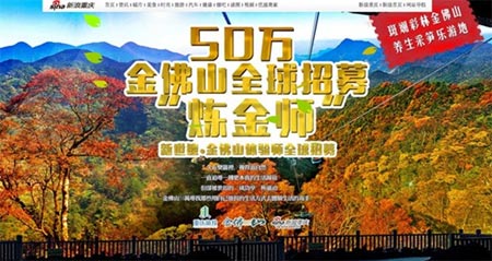 据悉,此次活动举办方为方便市民参与,特地设置了线上及线下两种报名途径。市民既可向金佛山官方微信(jinfoshan88)或“新浪旅游”活动专题(http://cq.sina.com.cn/zt/jfstys/index.shtml?qq-pf-to=pcqq.c2c)递交个人资料报名,也可通过8月底即将开展的商圈创意展及亲临金佛山现场报名。 同时,此次招募活动在8月20日~9月20日为报名海选阶段,景区将选出100名入围名单;9月22~9月30日复赛阶段,将从100名入围名单中选出20名;10月1日~10月30日,将进行20进8的决选。同时,在10月1日~10月7日国庆节期间,同步启动“为你心中的炼金师加油——游金佛山、送福袋”的活动;11月8日,景区还将举办颁奖盛典,全球公布体验计划;12月13日,正式开启2014金佛山冰雪节暨金佛山四季体验之旅启动仪式。 招募活动持续火热中,还在等什么,你就是“炼金师”! 咨询热线:4000239157 |