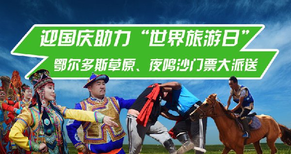 随着现代人生活、工作压力的增大,越来越多的上班族们将旅游作为一种减压方式,世界旅游组织也将每年的9月27日定为了世界旅游日。很多旅游爱好者都自发组织,在这一天前往心仪的旅游目的地上演他们自己的“节日狂欢Party”。 鄂尔多斯草原旅游区联合夜鸣沙旅游区为迎国庆助力“世界旅游日”推出门票大派送活动!鄂尔多斯草原那达慕通票原价180元/人,活动期间100元/人,豪华蒙古包住宿原价380/包,活动期间150/包。夜鸣沙娱乐通票260元/人,活动期间100元/人。其他特价票可以在天猫鄂尔多斯草原旅游旗舰店,同程,携程,去哪儿都可以订票。 |