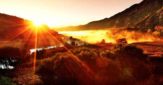 峡谷沿途,有很多景点,如潭、谷、瀑布之类的,可以自行选择游玩。不过,山谷里的景色就足够迷乱你的双眼了,大可不必花钱去一些开发的景点。峡谷秋冬,早晨阳光能直射的地方,会有壮美的晨雾景观,如果有机会,可以选在太阳初升的时候,找寻一处开阔的河床,看看雾气升腾的仙境,会给峡谷之行不一样的感观享受。秋天是个收获的季节,干涸的河床上,会有大片的玉米地,可深入其间,感受一下收获的喜悦。当然,秋天也是一些水果成熟的季节,像枣、梨、柿子、苹果,峡谷深处的农家院四周,都会有这些水果,尤其是金灿灿的柿子,树树皆金黄,看的我们直流口水。所以,我们毫不犹豫地进行了疯狂的采摘,价格很便宜,小的柿子六七毛钱一斤,大点的八毛到一块。