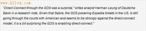 然而,这项联合声明并没有提及Sabre是否将会被涉及Expedia和美航的直连协议。 如果Sabre拒绝直连,并对此给予强烈的反对,也许Amadeus会成为这次合作的GDS供应商。Expedia在其全球范围的一些网站使用的都是Amadeus 。 “也许直连模式的确为获得更高利润的辅助服务提供了更多的机会,但也可能意味着基于交易价值的更低的利润率,”Leung说。(Ruby编译) |