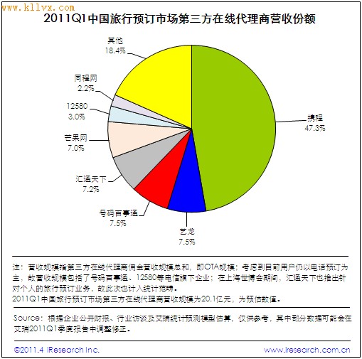 时间:2011-4-15 14:26:01 来源:网易科技| 根据艾瑞咨询预估数据,2011年第一季度中国旅行预订第三方在线代理商营收规模将达到20.1亿元,环比增长4.7%。艾瑞分析认为,春节期间旅游出行需求的提升,团购秒杀等新型旅游营销方式的刺激,是一季度旅行预订市场规模增长的主要原因。 2011Q1中国网上旅行预订OTA市场营收规模达20.1亿元,同比增长76.3% 纵观2011Q1中国旅行预订市场的发展,艾瑞分析认为,春节、元宵节作为中国主要传统节日,直接刺激了用户回家团圆的旅行需求,而线上渠道的多样化、便捷性毋庸置疑成为众多用户的首选;此外,一季度以去哪儿为代表掀起了机票酒店的团购、秒杀活动,尤其在特殊的节日如情人节,该活动引起了用户很大的关注。综上,艾瑞预测,2011Q1中国旅行预订OTA市场营收规模达20.1亿元,同比增长76.3%,环比增长4.7%。