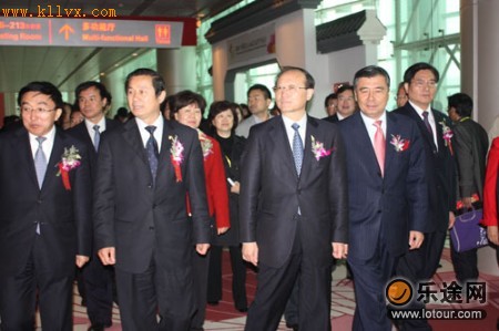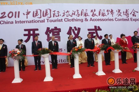 各位嘉宾领导出席本届赛博会开馆仪式 本次于今日正式开馆的2011中国国际旅游服装服饰赛博会由国家旅游局、江苏省人民政府主办,中国旅游协会、江苏省旅游局、苏州市人民政府联合承办,世界旅游组织、中国纺织工业协会、中国服装协会、中国流行色协会、中国纺织品商业协会、中国中纺集团公司、中国服饰报协办。活动有上千家旅游及服饰企业参加,将推出多种形式的旅游企业与服饰企业直接对接活动。国家旅游局邵琪伟局长、国家旅游局规划发展与财务司司长吴文学等出席了开馆仪式,并参观了场馆。