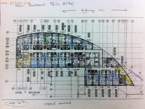 连Room 77的创始人兼总裁Brad Gerstner都亲自上阵,亲手绘制酒店的楼层平面图,如下图则为位于帕洛阿尔托市的四季酒店的平面图。