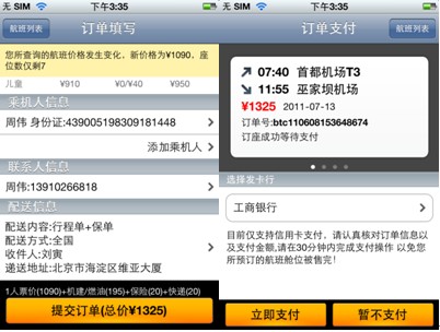 据悉,本次新增加的手机支付购买机票功能将涵盖国内大多数航线,可支持中国银行,中国工商银行,中国建设银行、广发银行共4家银行的信用卡手机在线支付。用户在选定航班后,可以登录去哪儿账户进行支付,也可以选择不登录支付,对于临时购买者来说十分方便,简化了购买流程。 此外,去哪儿网最新版苹果客户端还将推出个人中心和订单管理功能,更方便用户登录注册,管理自己的常用联系人、常用登机人及已经购买和关注的机票信息,对于已经购买的订单,可以及时查看。 另外,广大网友与用户千呼万唤的去哪儿IPAD(HD)版本也正在研发之中。 根据EyeforTravel的一项报告,通过手机进行的旅游预订量从2008年的两千万上升到2010年的两亿。Google预计2012年将有8%手机用户通过其智能手机预订旅游产品。国内方面,据艾瑞咨询研究指出,2010年,我国移动支付市场整体规模达到202.5亿元,同比增长31.1%。预计2011年移动支付市场将迎来更加强劲的增长,2012年手机支付交易规模将有望超过1000亿元,由此带来的手机支付广阔前景,使得第三方支付企业纷纷看好手机支付业务。 目前去哪儿网无线客户端已支持苹果(iPhone)、安卓(Android)、塞班(Symbian)三大手机系统,下载量与好评率一直稳居前列,其中苹果版客户端在iTunes排行名列前三,安卓版客户端在安卓市场已经位列第一。 |