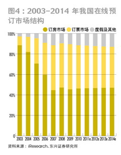 时间:2011-7-20 23:14:32 来源:新财富| 收入比重不断攀升 作为在线旅游预订市场的细分市场之一,旅游度假产品自然成了市场规模扩容的直接受益者。并且,由于近年来出游休闲化趋势明显,其市场份额也不断攀升。东兴证券的研究显示,2003年开始,旅游度假产品的在线预订市场份额持续增加,2010年网上旅游度假产品的交易规模已达到整个在线旅游市场交易的11.5%,预计未来几年该比例仍将保持稳步上升的趋势(图4)。另一方面,旅游度假产品的国内用户规模呈快速增长态势。2008-2010年在线旅游网站的访问次数和覆盖人数均实现平稳快速上升。截至2010年7月,旅游服务月度访问量和覆盖人数分别达到27650万次和7204万人。