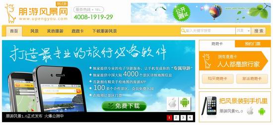 该产品由广州朋游互联网科技有限公司开发。该公司运营总监郑荣锋介绍道,朋游风景网目前提供中国大陆4000个景区详细地图信息和59类10000个POI兴趣点(Point of Interest)信息检索,以及 200个景区400条电子导游路线。以上功能都是永久免费使用。朋游风景网同时将新兴的LBS技术和微博也融入到产品设计中,用户可以使用朋游风景应用程序在景区签到并同步分享到新浪微博。对于上线后的用户反应,“公测2天多以来,网站页面访问量已经超过1万人次,”郑荣锋介绍说。