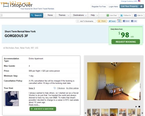 因此,如果iStopOver决定为当天纽约[注: 美国第一大城市和第一大港口,是美国工业、金融和经济的中心,位于哈得孙河注入大西洋的河口处,从地理上看,纽约由曼哈顿岛(Manhattan Island)、]市的所有预订提供50%的预订费折扣,那么他们每天将节约大概65美元的预订费。 如果是80%的折扣则节约大概103美元的预订费。(当然,具体要看9月1日推出的折扣信息中是否含有限制条款或条件。) iStopOver CEO Anthony Lipschitz 表示,iStopOver目前提供92个国家的14,500个城市的住宿预订,该公司将会在其Facebook、Twitte页面以及自身网站上发布每日优惠交易信息。 对于目前的团购潮,Lipschitz表示,iStopOver并不打算卷入这股热潮中,为住宿预订提供大幅折扣,但是希望以预订费折扣的形式为其忠诚客户提供“奖金”。 每日优惠交易的主要目的是提高该公司的社会媒体知名度。 Lipschitz声称,竞争对手Airbnb房屋遭租客洗劫事件而造成的负面舆论,并没有对iStopOver造成影响。 Lipschitz承认,个人对个人的度假租赁网站如iStopOver与Airbnb都存在“潜在的风险”。 为了降低风险,iStopOver从2010南非[注: 南非地处南半球,位于非洲大陆的最南端,介于南纬22度至35度和东经17度和33度之间,陆地面积为1219,090平方公里,]世界杯以来,为屋主与租客提供了保险,例如:为北美[注: 北美泛指拉丁美洲国家以北的美洲地区,位于西半球北部。东滨大西洋,西临太平洋,北濒北冰洋,南为墨西哥。其国家主要包括美国和加拿大。]地区的屋主提供CSA Travel Protection的保险,并为全球的租客提供World Nomads的保险。 iStopOver还为屋主提供了SafeMart的安全系统。 此外,iStopOver在客人入住24小时之后,并在屋主获得客人提供的安全代码之后,才会把客人的付款转给屋主,Lipschitz说。(Melody 编译) |