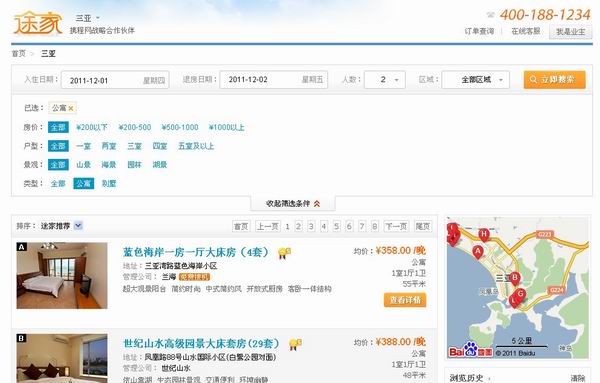 时间:2011-12-2 10:27:54 来源:环球旅讯记者 梁淑芬| 今年以来,短租成为各新兴网站竞相布局的新领域,继爱日租、游天下、蚂蚁短租陆续上线后,度假公寓短租平台途家网12月1日也正式上线发布。