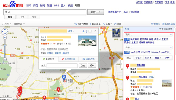 图二:百度地图酒店搜索页面 |