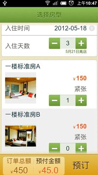 时间:2012-5-9 21:57:18 来源:智旅动力| 松果网近日推出手机应用客栈达人,这是国内第一个以客栈预订为主的手机应用,目前暂只支持Anrdoid平台,iPhone也已经在开发之中。通过小编的简单试用,发现用户体验上还稍显粗糙,希望能尽快改进。