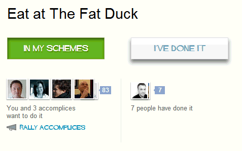 我们先来看看我所说的佛得角群岛渡轮旅程,遗憾的是,我在Google+上没有一位好友对这一旅程感兴趣。但不要紧! 我在Google Schemer上发布了一个愿望:“去The Fat Duck餐厅吃饭”。