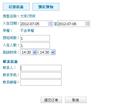 图二:预订页面 据了解,这两家酒店的“微订房”系统都是由第三方服务商“天下秀InMyShow”提供,该公司CEO李檬受访时表示“微订房”系统是公司社交应用产品之一,今年6月在新浪微博开放平台发布测试版以来,已经协助100家酒店开通“微订房”,其中30%是海外酒店,目前每天成功预订单数合计约十几张。虽然刚涉足酒店预订应用领域,李檬对这个领域发展前景颇为看好,“我们预计今年计划合作酒店将超过1000家,相信通过用户口碑传播,在酒店曝光率和预订量提升上都将发挥一定作用”。 |
