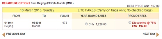 看似去哪儿的国际机票很便宜,但是事实如何呢?我们看看宿务太平洋航空公司官网的搜索价格: