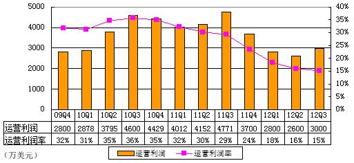 携程第三季度的营业利润为1亿9000万元 (3000万美元),同比下降38%,环比上升13%。若不计股权报酬费用,2012年第三季度的营业利润为2亿9900万元(4800万美 |