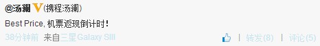 时间:2013-1-25 13:54:53 来源:i美股| 北京时间1月24日消息 在线旅游价格战在酒店领域上演得如火如荼,有消息称机票领域价格战也将因为携程的参与而全面展开;记者今日致电携程副总裁汤澜证实了这一消息。 汤澜表示:“携程马上会将返现措施扩展至机票预订领域;这样'机加酒'的自由行产品也可以推出返现措施,其他产品也不排除参与返现。” 这就意味着携程将在酒店、机票和度假旅游三大产品线全面推出返现措施;而十几天前汤澜在一次媒体电话会议中刚表示,价格战不会延伸至酒店之外的其他领域。汤澜表示,管理层重新讨论后,又在这两天决定也要在机票业务推出返现;既然开打了,就不要再有畏惧。 携程自2012年7月开始全面参与酒店预订价格战之后,第四季度随着一些品牌酒店集团退出返现措施有所缓和;但艺龙又在机票领域推出返现,同程又马上跟进。起初携程对机票预订量只有其十分之一的艺龙、同程不是很在意,并不准备全面跟进;但可能是出于避免出现酒店领域艺龙追赶携程的现象,携程管理层最终还是决定在机票和其他业务线上都考虑推出返现措施。汤澜表示,具体返现方案可能将在春节后推出。