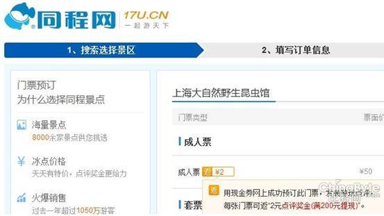 分析:驴妈妈旅游网规定点评奖金(返现)只能抵扣后续购买订单的金额,相当于不允许消费者提现;同程网规定点评奖金(返现)满200元可提现;携程旅游网规定现金账户金额(现金账户包括但不仅限于返现金额)满50元可提现。由此可以得出三家网站的提现门槛排序是:驴妈妈旅游网>同程网>携程旅行网。 除价格战外,景区覆盖数量也是目前门票预订领域的争议焦点。携程旅游公布的门票预订平台景区覆盖数量是3000多家国内景区,其中5A景区80多个;驴妈妈旅游网宣称现有合作景区数量约为10000家,目前在合作景区数量、门票产品数量、门票销量等多个维度均位列在线旅游网站前列;同程网公布的合作景区数量为超过5000家。记者无法对各家的覆盖景区数量进行精确盘点,但随机查询了三家网站门票频道售卖的大量门票后,发现 |