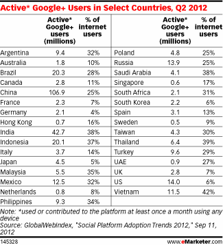 社交媒体分析和数据调研公司GlobalWebIndex指出,在2012年第四季度,Google+的全球用户数量达到3.43亿。但很多营销人员和数字领域的权威人士认为,上述用户数据并不能反映实际情况,因为与传统社交网络的用户活跃度不同,很多用户在Google+网站上并不活跃。 无论情况是否真的是这样,但该网站的命名(无论它是不是一家正式的社交网络)却与其在旅行搜索和计划的影响力无关。Google+在不断地将来自旅行者、旅游品牌和目的地的照片以及来自餐厅点评网站Zagat的用户点评等内容整合到搜索引擎结果页的右侧,该板块在页面上所占的空间不断扩大。当用户点击这一版块时,他们会被引导至Google+ Local页面,因此他们的确是在“使用”Google+,无论他们是否意识到这一点。 另外,Google+的批评者倾向于以美国市场的角度来评估该网站的表现。它在美国的渗透率确实较低,根据GlobalWebIndex的2012年第二季度数据,仅6%的美国互联网用户使用Google+。而在全球范围内,该网站的渗透率高很多。在2012年第二季度,来自17个不同国家的超过25%的互联网用户至少曾登录过一次Google+或者在该网站上发布内容,其中包括在中国的1亿用户、在印度的超过4,000万用户、巴西的超过2,000万用户和印度尼西亚的超过2,000万用户。 (Wing 编译)