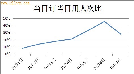 “十一”期间,携程人均门票预订的消费额约为100元。 据携程门票预订平台统计,门票预订2012年平均提前日期为两天,今年十一假期为一天,预订期出现明显提前的趋势。 调查显示,35%的游客选择在旅途开始前预订旅游景点的门票,超过50%的游客则是在旅途中完成门票预订的。当日订当日用的人次比例从10月1日开始直线上升,在10月6日达到峰值,超过40%,10月7日开始下降。