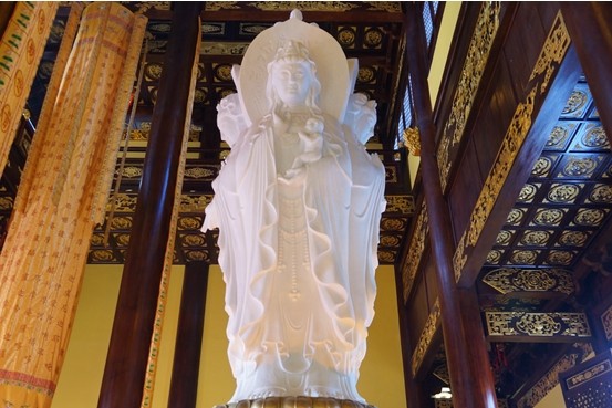 时间:2014-04-02 21:47:43 来源:不详 月岩寺始建于佛教鼎盛时期唐朝的武后垂拱元年(公元685年),距今已1329年。由于观世音菩萨屡显其身于此,而成为观世音菩萨应化道场。直至清朝同治年间更名为“月光寺”,名噪东南。 千年的时光中;高僧大德灿若繁星,于此精进修行,大彻大悟,证得佛道,一代高僧马祖道一曾在此游历。于是,月岩寺成为历代学佛之人游历参学的重要道场。 千年的时光中;数不尽的将相王侯,为造福一方,每逢瘟疫灾历,必于此大事法会,求佛庇佑。逐渐形成祈福护佑选月岩寺,驱邪降魔选道教天师府的习俗。 千年的时光中;无数的善男信女,遭遇人生种种烦恼困苦,皆集于此,求菩萨点化,破迷开悟,流转命运。于是,月岩寺成为众善信许愿还愿的灵验之地。 千年古刹终损于战火、毁于动乱,人天悲叹! 时逢盛世,鹰潭市委、市政府决定对月湖岩公园实施提升改造工程,大功德主何芳斥巨资投入寺院恢复重建,千年古刹月岩寺得以重现,人天欢喜! 月岩寺由观音苑、释迦殿、地藏殿、山门组成。其配套设施包括:赣东北最大的素食文化、讲经堂 “月岩文馆”及“孟荷文化交流中心”组成。其中观音苑已于2013年11月20日落成开光;月岩文馆亦于2013年12月3日盛大封顶。 鹰潭市月岩寺观音苑全部采用一级印尼进口红菠萝格木建造,其中大殿柱子选材直径超过55公分,高度达到19米,仅一根树的重量近6吨超过一万斤原木。经专家鉴定,至少能够承受一千年的自然风化。大殿的设计施工由参与过故宫修复的古建专业队伍以中式、古典的皇家寺院风格,用传统古建方式、纯手工雕刻修建而成,整个木质建筑物没有一根铁钉。观音苑顶部采用宜兴烧制的黄金釉琉璃瓦,大殿地面铺设的是产自御窑的金砖。栏杆、须弥座、阶沿石及台阶全部采用特一级汉白玉。观音苑内部含四面观音在内手工雕刻三十三观音像。 此建筑在整个华东乃至全国寺院均属稀少。 (图为:已经落成开光的观音苑) (图为:大殿内精美的观音三十二像雕刻) (图为:正在建设施工的释迦殿) 在《大藏经》的三藏十二部中,所提到的诸大菩萨之处极多,佛在灵鹫山法会上,便有八万多位大菩萨,重要的有十八位。而在中国有四大菩萨最为著名,分别以愿、行、智、悲为代表:地藏王菩萨表愿力,普贤菩萨表实践,文殊菩萨表智慧,观世音菩萨表慈悲。在越南、日本、韩国、印度等地特别推崇观世音的信仰。各地的佛教作品中,发现所有的绘画及雕塑以观音菩萨圣像居多,以此便有“家家观世音,户户弥陀佛”之说。 《妙法莲华经·观世音菩萨普门品》中,观世音菩萨能现三十二化身说法,随类度化,救度七十二种大难。由此,观世音菩萨一直以慈悲为代表,大慈大悲(无缘之慈为大慈,同体之悲是大悲)。被认为是最迫切、最彻底的救度者。农历二月十九为观音诞生日,六月十九为观音成道日,九月十九为观音出家日,每逢这三个节日,世界各地的佛教寺院,善信云集,诵经祈福、培植、扩大“无缘大慈,同体大悲”的慈悲心。众生在持诵祈福中消除烦恼,开本见知。 在佛教中,观世音菩萨是西方极乐世界阿弥陀佛座下的上首菩萨同大势至菩萨一起是阿弥陀佛身边的肋侍菩萨,并称为“西方三圣”。 四面观音塑像高6.8米,采用产自四川雅安的特一级汉白玉,由重近百吨的特形、无拼接、无裂缝、稀有罕见的整块大料雕刻而成。佛像质地洁白无瑕,佛容庄严,工艺精湛。佛像由国家级非物质文化遗产“曲阳石雕”传承人国家级雕刻大师带领几十人雕刻技师历时近百日雕刻完成(故宫、天安门金水桥、人民英雄纪念碑等汉白玉雕刻艺术品均出自“曲阳石雕”雕刻艺人之手)。据《明治增补诸宗佛像图汇》(现藏于日本东京国立博物馆)有三十三种观世音像,其中又以唐代风格的四面观音像而著名,代表智慧、平安、如意、传承。 (图为:特一级汉白玉四面观音像) 月岩寺位于鹰潭市体育馆对面月湖岩公园内。 月湖岩由于其山体如半月,美丽的白露湾环山流过而成为中国江西鹰潭月湖区命名的由来,是鹰潭地域文化符号和文化名片。南宋时期,著名诗人杨万里游历到此,时值中秋,月亮将圆,看到月湖岩恰似天上明月,四周田畴交错,白露河蜿蜒偎依,欣然挥毫,写下了“美尽东南”四个大字,刻于碑石,立于岩前。清代诗人江树德康熙年间游览月湖岩,题诗盛赞:“谁将石罅辟蟾宫,水明沙碧一鉴空。古洞浮虚能绘月,清溪曲径自迎风。半山烟送林边鸟,万壑涛飞涧下松。闲共白云眠佛国,宛然身在玉壶中。”意境高远,令人痴迷陶醉。2010年10月,月湖岩公园盛装开园,月湖岩公园面积220余亩,公园分为入口景区、湿地景区和岩石景区,有月湖映岩、摩崖石刻、水帘洞天、荷香小榭、飞崖栈道、阳光草坪等多个景点,具有典型的江南园林特色。 千年古刹月岩寺的恢复重建,以弘扬佛教文化为任,祈福国泰民安,社会祥和,人民安康。 护佑鹰潭政通人和。 (图为:月岩寺贡灯法会夜景) (图为:月湖岩山水) |