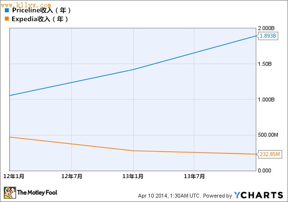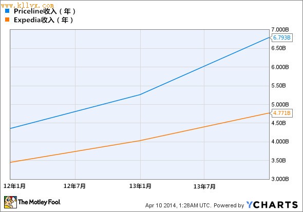 时间:2014-04-23 09:44:45 来源:环球旅讯 【环球旅讯】4月8日,《华尔街日报》的一篇文章指出,Google正对旅游业进行前所未有的大力投入。互联网搜索巨头的这一举动或许会令某些人感到意外,但联想到该公司在其他领域的投资,这一举动倒也在情理之中。投资者们需要考虑的最重要的问题不是Google这次能否成功,而在于像Priceline.com这样的大型旅游网站会受到怎样的影响。 旅游业是个大蛋糕 Priceline.com是目前旅游业当之无愧的大赢家。在过去三年里,该公司的收入从最初的44亿美元增长到了68亿美元,增长了56%,这主要是由其出售的客房间夜数增长所带动的。Expedia也同样表现不俗,其收入在过去三年里从34亿美元增长为48亿美元,增长了38%。