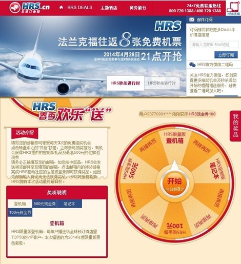 时间:2014-04-28 11:40:17 来源:不详 就在日前,欧洲领先的线上酒店预订网站——HRS全球订房网宣布将在4月推出名为“春季欢乐送”的系列主题活动,在活动期间,用户只需要登陆HRS全球订房网的国内官网,就能参与免费抽奖活动,通过在线转动HRS全球订房网为用户定制的幸运罗盘,用户可以在线抽取HRS限量登机箱、500元面值现金券等不同价值的奖品。据HRS全球订房网内部人士介绍,此次幸运的抽奖几率很高,大约每三位幸运用户中就有一名能抽中幸运大奖。 除了参与幸运大抽奖之外,用户还可以在“春季欢乐送”系列主题活动期间,参与更为刺激的秒杀活动,参与者可选择中意的奖品下的秒杀按钮进入秒杀环节,最快速度提交正确答案的用户将获得该奖品。如奖品数量超过一件,则根据商品数量X,最快速度提交正确答案的前X位用户获得奖品。相比较罗盘抽奖,这项秒杀活动的奖品更为丰厚,用户可以获得最高价值2万元左右的欧洲双人机票,获得免费畅游欧洲的最佳机会。 对于今年春季推出的这一系列主题活动,HRS全球订房网负责人认为,这是网站不断尝试本土化营销新模式的一种很好的尝试,HRS始终相信,传统的酒店业正在逐渐摆脱坐等客人上门的盈利模式,主动向潜在的消费受众“挥挥手”,“通过系列主题活动,让用户感受HRS的服务特色,有助于我们品牌在国内的认知度推广。毕竟酒店预订自身的属性决定了无论何时该领域都会是竞争非常激烈的领域,这一点,放诸到互联网时代也是同样的道理。我们希望未来推出更多的特色主题活动,让用户切身体会到我们的优质服务和丰富的欧洲酒店资源,增加对于中国用户的了解以及使用黏性。” 据悉,自去年起全面进军中国市场的HRS全球订房网,拥有超过25万家各类酒店的完整数据库,覆盖180个国家和地区。由于欧洲市场大多数酒店都是各具特色的单体酒店,因此手中握有大部分此类酒店资源的HRS全球订房网,也一直被业内人士形容为“欧洲酒店预订专家”。目前HRS全球订房网的酒店覆盖范围广泛,包括成千上万家单体酒店以及数百个连锁酒店集团,其在线预订服务能适用于包括城市观光游、Spa休闲游、海滩度假游等各种形式的旅游项目。 HRS方面透露,未来将继续开拓各种在线主题活动,此前HRS中国官方网站曾开辟了一个单独频道,每日在全球范围内精选一家高星级酒店,承诺提供其官网上最低价再至少50%的折扣,诸如此类的活动得到了很多用户的认可,HRS将继续坚持走“精品化”服务之路,将欧洲用户可以享受到的高端酒店服务带到国人身边。 |