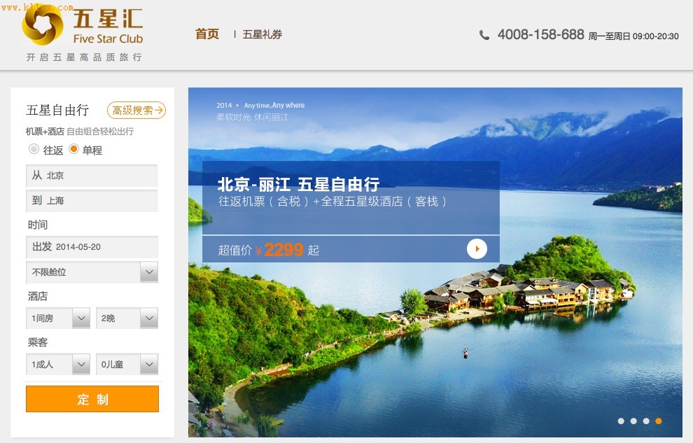 时间:2014-05-18 23:24:08 来源:快鲤鱼 不久前,定位休闲旅游的途牛网在美国纳斯达克上市,成为继携程、艺龙、去哪儿之后的第四家在线旅游中概股。酒店市场,已被携程牢牢掌控,去哪儿在聚合了中小OTA之后,成为巨大的机票出票机器。机票+酒店这一细分市场,还有市场吗? 模式:打包高端自由行 对于自由行来说,核心的两块业务是机票+酒店,在整个旅游过程中,如果把这大核心业务解决好,自由行的一大半问题已经解决。 五星汇做的是机票+五星酒店自由行。对于一个用户的旅行体验来说,相比机票,酒店的重要性更强。而五星汇切入的高端自由行逻辑是:只要不打乱酒店的价格体系,就可以拿到相对便宜的间夜。不打折裸售产品,这也成了众多五星级酒店的默认规则。因为对于高端的酒店,一旦便宜裸售产品,就会伤害已有的用户。