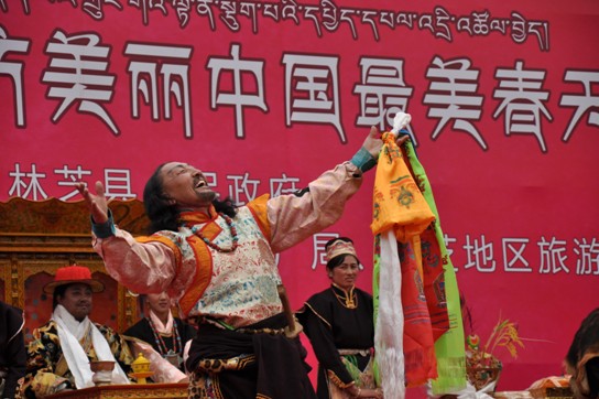 时间:2014-05-18 23:25:34 来源:不详 ——爱神之箭、桃花仙子网络活动完美收官 二月,当林芝的雪山尚未消融,当热情的西藏同胞正为藏历新年选购崭新的切玛而面露喜色,当沉睡了一冬的柳树开始抽出第一枝嫩芽,林芝的桃花季便开始暂露头角。 每年的桃花节最让人期待的就是那些饱含浓浓爱情元素的主题活动,上百对新人相约林芝在桃花下喜结连理、陈渠珍的传记小说《艽野尘梦》亮相桃花节讲诉100年前的林芝爱情传奇、大型实景剧《桃花姻缘》再现工布王迎娶新娘的经典桥段,每年的桃花节似乎都将林芝这个爱情圣地诠释得淋淋尽致。