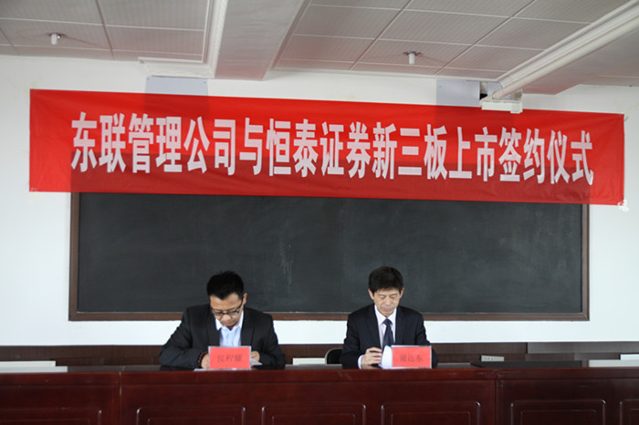 東联文化旅游管理公司董事长侯程耀与恒泰证券公司董事长谢远东现场签订了合作协议。 東联文化旅游管理公司隶属于东联旅游集团,2013年,伴着奏响建设文化强国的时代强音,迎着文化复兴的浪潮与文化产业的春风,東联旅游集团从鄂尔多斯众多民营企业中脱颖而出,从新兴的文化旅游、民族演艺、文化节庆、文化娱乐等方面入手,打造文化产业富集区,在内蒙古文化产业迅速崛起和快速发展的时机里,并迅速成为民族文化大区建设中的亮点。