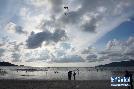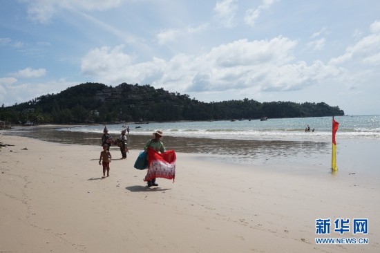 8月11日,清理非法经营后的普吉岛邦涛海滩(Bang Tao beach)。原来非法设于海滩上的遮阳躺椅均被撤销,还原海滩原貌。 泰国执政军方近期重点提振国内支柱产业之一旅游业,不但推出为中国游客免三个月签证费的政策吸引游客,还加大了打击海滩非法经营和出租车非法营运等问题的力度,经过整治,目前已基本还原了普吉、芭提雅等旅游胜地的海滩原貌。新华网记者杨云燕摄