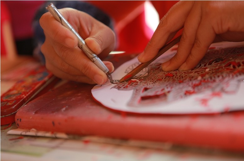 沿途美丽的风景让人难以忘怀,一个小时的车程后我们来到了横头山宾馆,稍作休息便开始了我们的文化体验任务。“海伦剪纸”作为哈尔滨的地方文化品牌,历史悠久,享誉中外。为了增加现场的互动体验环节,《时尚旅游》特别邀请到“海伦剪纸”的年青一代传承人为现场嘉宾言传身教,展示“海伦剪纸”中存在的深厚文化历史底蕴与剪刻要领。众多车友与嘉宾纷纷跃跃欲试,在传承人的指导下认真地体验了剪纸手工艺术。早在1993年,海伦已被国家文化部授予“中国民间艺术——剪纸之乡”的荣誉称号。有别于其它地区的传统剪纸,“海伦剪纸”独树一帜,主要采用灯烟熏、剪刀剪,剪纸图像采用花鸟、动物、人物图案来制作挂钱、窗花等,形成了独特鲜明的艺术风格。现场体验环节中,嘉宾们更是有幸近距离地欣赏了《满族婚俗图》、《鄂伦春风情》、《马到成功》等知名的“海伦剪纸”代表作品,观赏之余纷纷赞叹民间手工艺术的精湛技艺,及其爆发出的蓬勃生命力。