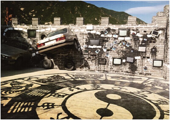 “极”艺术装置作品,是由向水工作室联合全球多位知名艺术学者,反复探讨研究、凝聚群体智慧,最终共同完成。将太极、八卦、长城、工业等多种元素符号累积组合,看似毫无相关、并不和谐的颗粒物质,呈现“极”所蕴含的无限的智慧与玄机。在界定空间内,透过视觉传达和艺术表现,在观看中学会反思,在反思中走向幸福生活的艺术觉醒。